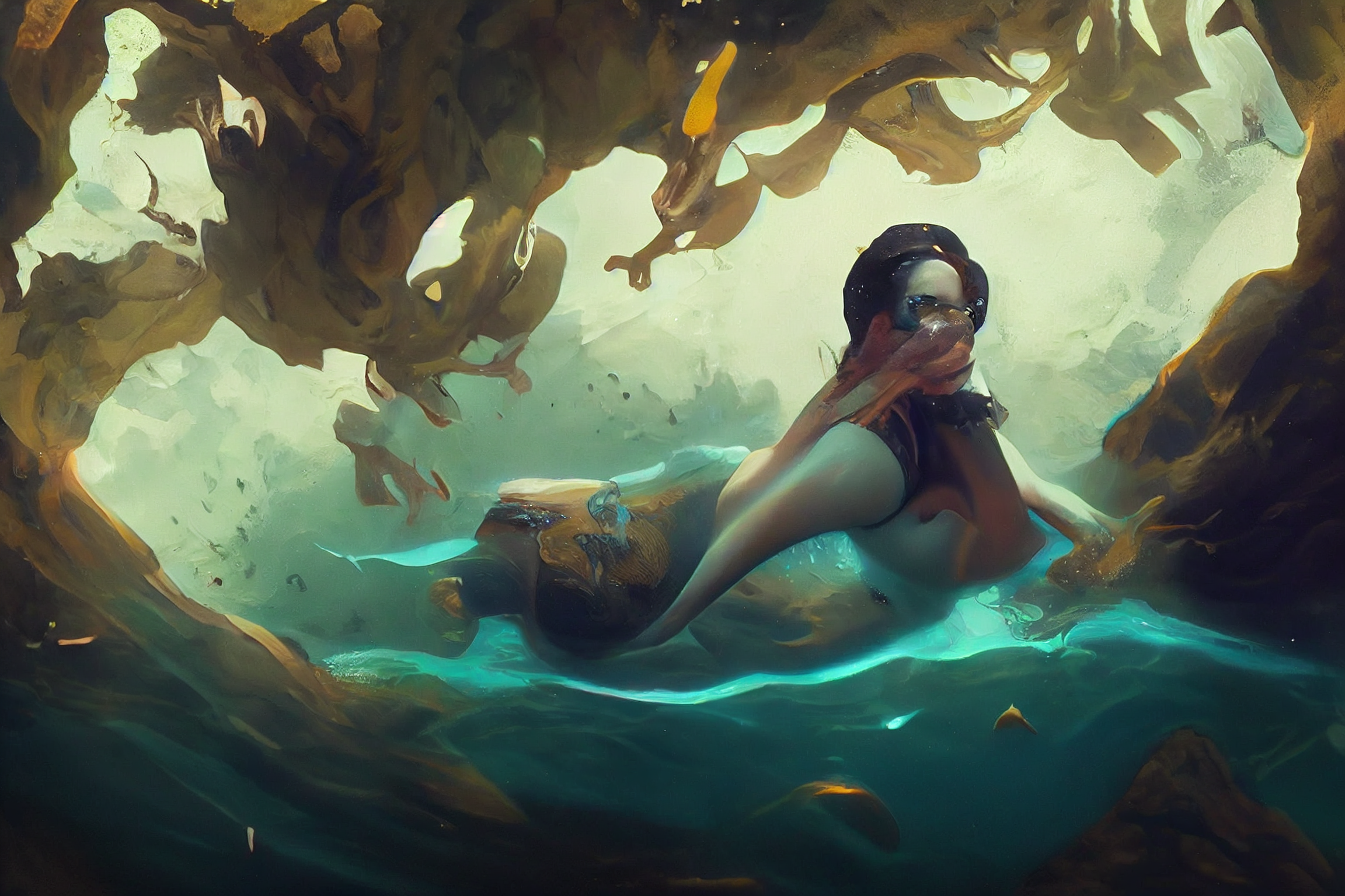We passed a house with a huge glass window. Set within the window was a painting of a woman swimming naked underwater in a stony stream. It was awesome, the viewer’s perspective was from above, from out of the water, as if standing on a riverbank looking down into the water.